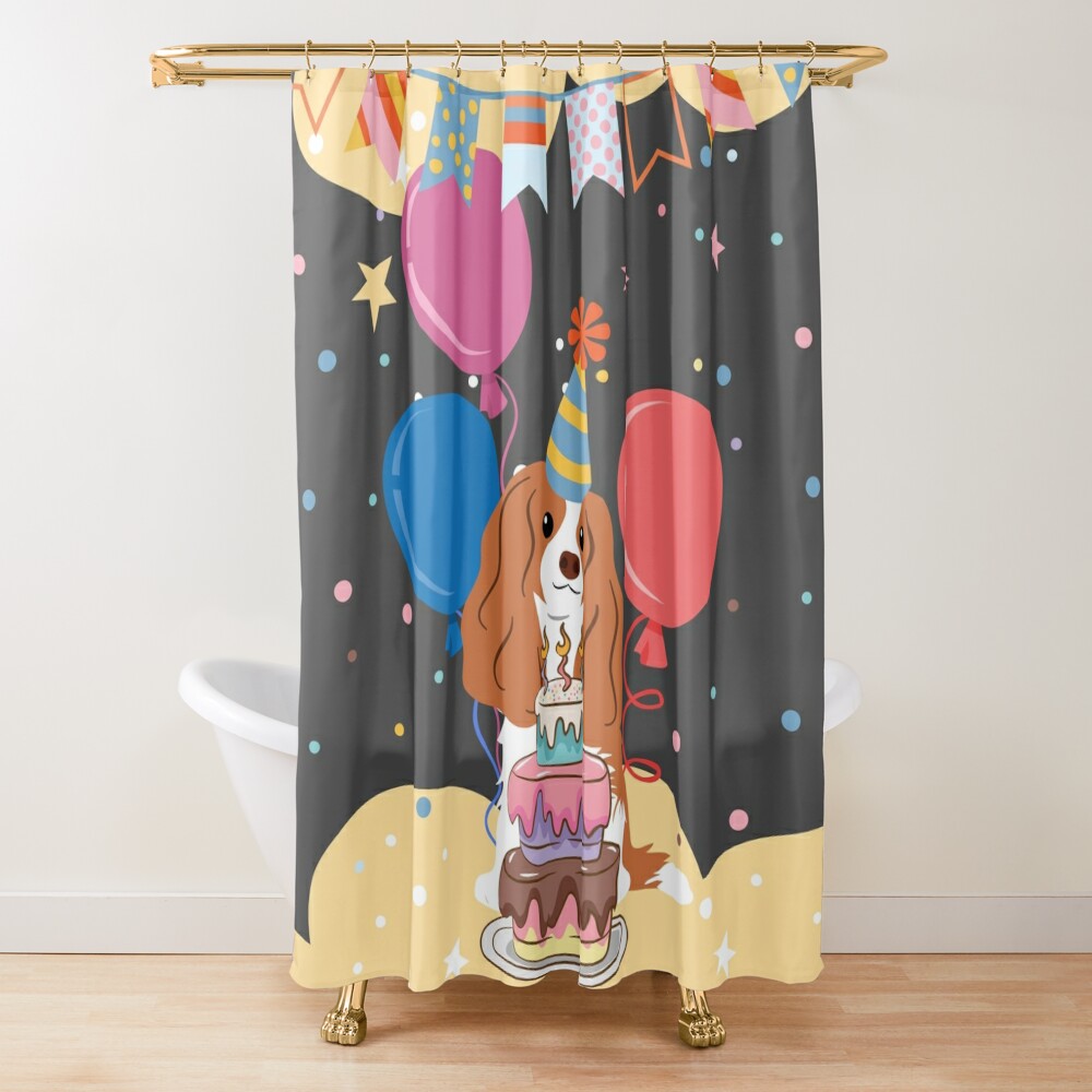 Happy Birthday King Charles Spaniel Blenheim Shower Curtain