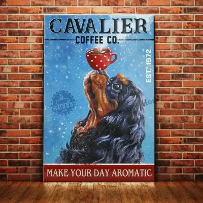 Cozy Cute Cavalier Spaniel Coffee Corner Retro Wall Art
